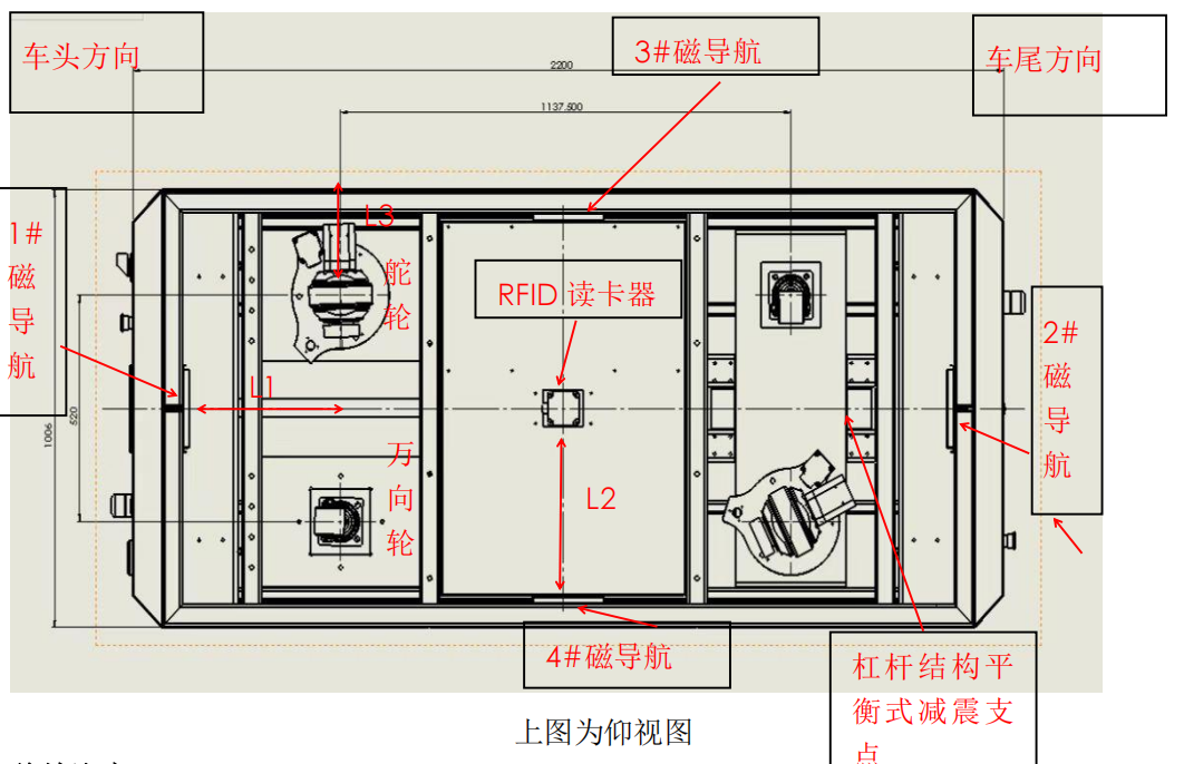 磁導航固定在車體安裝,杠桿結構平衡式減震機構安裝方式如下: