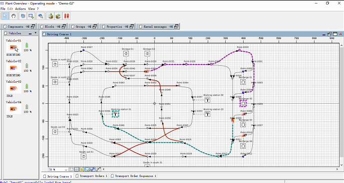 2.交通管制:根據(jù)每臺AGV當(dāng)前的運行狀態(tài)實時地進(jìn)行交通管制,防止AGV車輛發(fā)生碰撞以及路線沖突。通常會跟路徑規(guī)劃配合使用。
